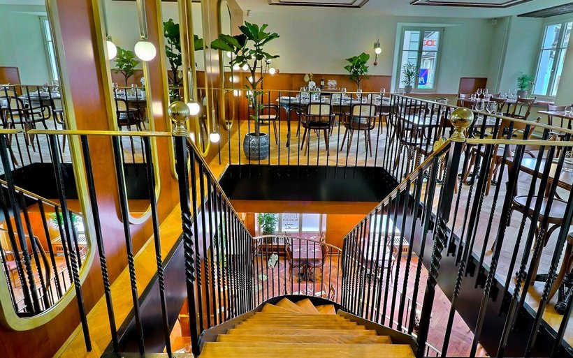 Un grand escalier central en fer forgé, des boiseries d’époque, des fresques et un parquet historique, un mobilier brasserie, le tout dans un style Belle Epoque soigné. Près de trois ans de travaux auront été nécessaires pour redonner tout son lustre au Tonnelier de Bulle, adresse historique du chef-lieu gruérien. A l’origine fabrique de tonneaux destinés au transport du fromage puis auberge dès 1780, la bâtisse accueille aujourd’hui un restaurant et boutique-hôtel de 18 chambres. L'association Icomos vient de lui décerner le prix du restaurant historique de l’année 2023. Tandis que le prix de l’hôtel historique de l’année a été décerné au Ortstockhaus de Braunwald (GL), adresse de montagne située à 1772 mètres d’altitude.