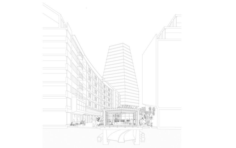 Das Projekt schaffe mit verglasten Holzpavillons, die den Verlauf des eingedolten Birsig nachzeichnen, eine lebendige urbane Atmosphäre, heisst es in der Mitteilung. Die Pavillons sollen in einer begrünten Umgebung als kreative Orte für für Dienstleister und für öffentliche Nutzungen zur Verfügung stehen. Denkbar sind laut Projektvorschlag Ateliers, Verkaufsflächen für lokale Start-ups und Gastrobetriebe.