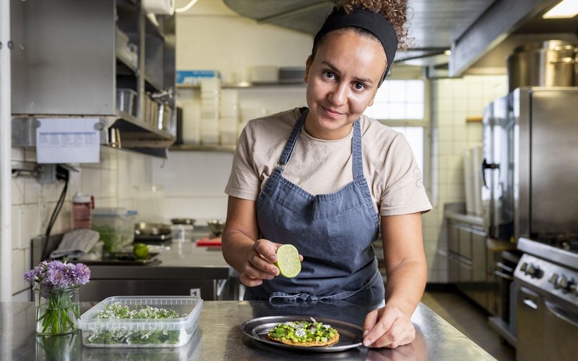 «Gemüse ist die Zukunft», sagt Zizi Hattab. Mit ihrem vor zwei Jahren eröffneten «Kle» im Kreis 3 landete sie einen Überraschungserfolg, wie er selbst in der lebendigen Zürcher Szene Seltenheitswert hat: Mit veganer Küche auf Gourmetniveau traf sie einen Nerv. Ihr Markenzeichen sind aufwendig verarbeitete Gemüse, tiefgründige Saucen und markante Gewürze. Ihr Sonntagsbrunch ist Kult, abends sind zwei Seatings ausreserviert. Der Gault Millau bewertete die Quereinsteigerin aus dem Stand mit 14 Punkten (inzwischen sind es 15, Tendenz steigend).