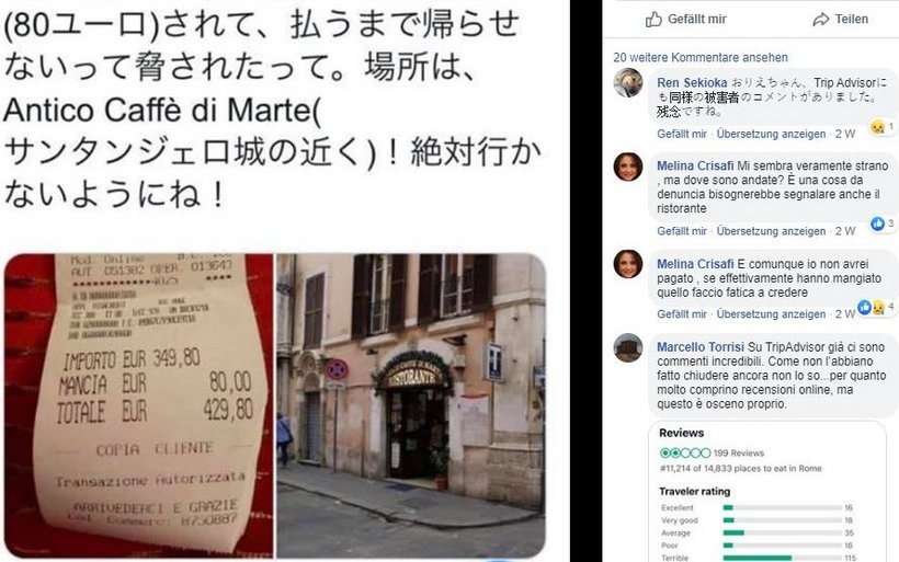 Der Restaurant-Inhaber bestritt, dass die beiden Japanerinnen lediglich zwei Teller Spaghetti konsumiert hatten, wie diese auf Facebook berichtet hatten. Sie hätten auch zwei Fischplatten mit Gemüse und Wein bestellt. Die beiden Japanerinnen hatten auf Facebook ein Foto der hohen Rechnung gepostet.