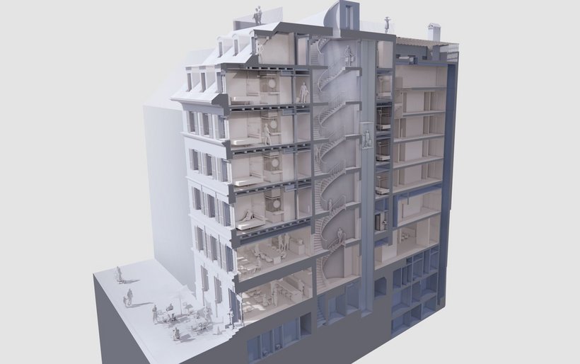 Als Grundlage für die Erarbeitung des Projekts wurde das historische Gebäude in aufwändiger Arbeit vermessen und im digitalen 3D-Modell nachgebaut. Dadurch können die Eingriffe an der sensiblen Bausubstanz gezielter und präziser erfolgen, sodass das «Metropole» dereinst wieder einen wertvollen Beitrag zum Erhalt des historischen Berner Stadtbildes leisten wird. Das bereits heute als Hotel genutzte Eckgebäude ist um das Jahr 1880 erbaut worden und mit dem Nachbarsgebäude aus den 1970er-Jahren verbunden.[RELATED]