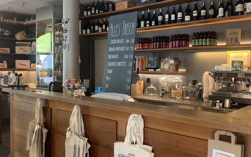 Die geschlossene Weinbar Consum begann Leonardt zusammen mit seinem Team und einem Innenarchitekten am vergangenen Montagabend auszuräumen. Anstelle von Stühlen und Tischen wurden Regale errichtet. Einzig die Theke wurde belassen. Seit Mittwochnachmittag ist das Lokal wiedereröffnet – und zwar als Lebensmittelladen, wo die Bevölkerung einkaufen kann wie früher. Denn zu Beginn des 20. Jahrhunderts eröffnete dort der Basler Allgemeine Consum Verein (heute Coop) seinen ersten Consum-Laden, der bis zur Übernahme des Hauses an der Ecke Rheingasse-Schafgasse durch die Krafft-Gruppe bestand.[IMG 2-9]