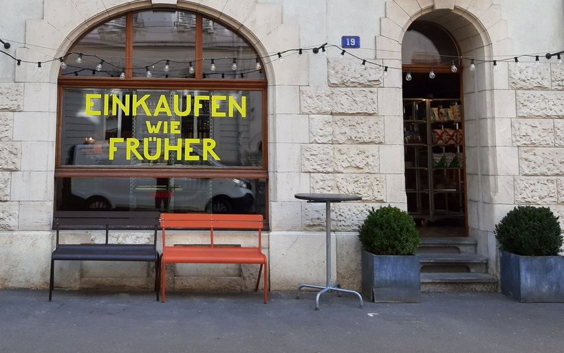 Die regionalen Produkte in der temporär wieder zu einem «Consum» umgebauten Bar stammen von den Lieferanten, die bis vor dem Lockdown die Krafft-Gruppe mit ihren Restaurants und Bars aber auch Cateringbetriebe der Stadt beliefert hatten. «Die sitzen allen auf ihrer Ware und sind froh, wenn sie diese doch noch verkaufen können», so Leonardt. «Unsere langjährigen Lieferanten sind nun also die Hauptlieferanten für unseren Laden». Verkauft werden Grundnahrungsmittel, wie Milchprodukte, Mehl, Gemüse, Früchte vom Bauernhof aber auch Fleisch vom Metzger.