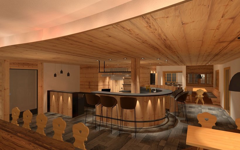 [IMG 2]Die bewährte Bar wird auch künftig das Herzstück des neuen Restaurants und weiterhin ein beliebter Treffpunkt bleiben. Im komplett umgestalteten Gastronomieteil werden nach dem Umbau knorriges Holz, natürlicher Stein für eine heimelige sowie warme Atmosphäre sorgen und mit dem Chalet-Stil des Hauses harmonieren.