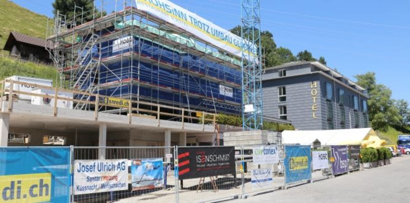 Während den Bauarbeiten wird der Restaurant- und Hotelbetrieb aufrechterhalten. «Unsere Gäste undMitarbeitenden bringen den Bauarbeiten und den damit verbundenen Lärmimmissionen vielVerständnis entgegen, wissen sie doch, dass wir innovativ sind, in die Zukunft investierenund dass das Ende der Bauarbeiten absehbar ist», sagt Edith Schlömmer-Krummenacher.