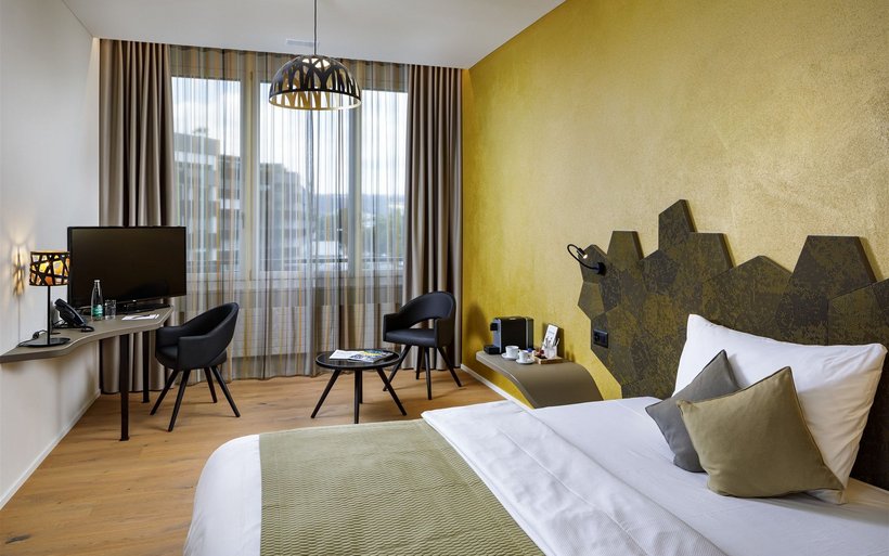 Das neue Business- und Stadthotel mit 30 Langzeit-Apartments mit Hotelservice bietet 64 Zimmer, die in vier verschiedene Kategorien aufgeteilt sind. Nebst Zimmern zur Einzel- oder Doppelbelegung sind auch Suiten und Familienzimmer buchbar. Die Einrichtung ist praktisch und aus hochwertigen Materialien mit warmen Tönen, damit sich der Gast wohlfühlen und entspannen kann.[IMG 4-7]