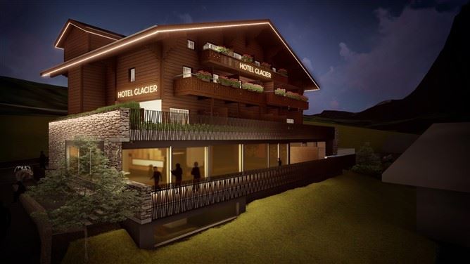 Im April will das neue Gastgeberehepaar das «Glacier» wiedereröffnen. Neben den Renovationsarbeiten an der Süd- und Westseite des Gebäudes kam ein Erweiterungsbau hinzu. Der Eingang wurde mit einer neuen Lounge und einem Restaurant nach Westen verlegt. Das Restaurant liegt neu eine Etage tiefer. Hinzu gekommen sind ein Spa, ein Weinkeller, ein Aufzug und neun neue Zimmer.