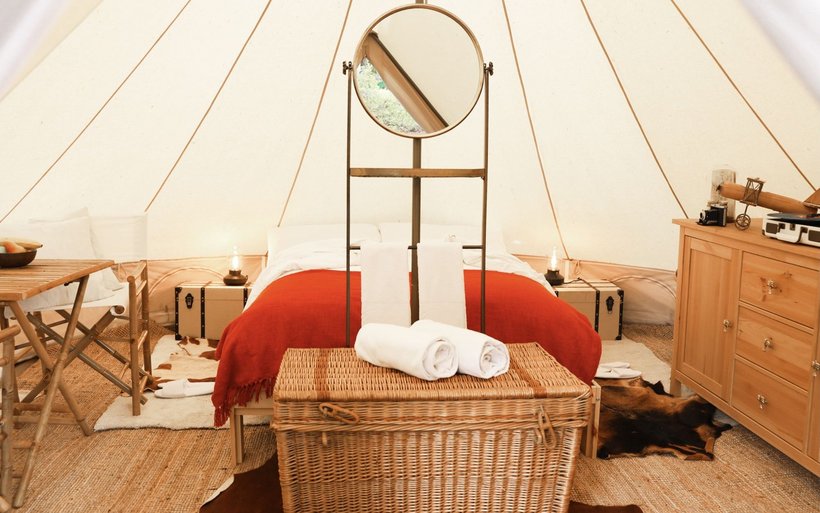 Glamping, die glamouröse Version des Campings, vereint das Beste aus zwei Welten: Der Natur so nah sein wie nur möglich, aber auf keine Annehmlichkeiten verzichten müssen. Die Zelte sind wie ein Hotelzimmer ausgestattet (Möblierung, Strom, WiFi, BIO Toilet, fliessend Wasser), gefrühstückt wird entweder intim per Room Service oder im Hotel, für die warme Dusche geht es in den Spa.