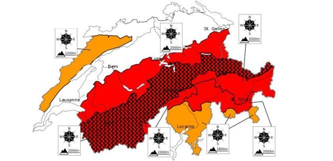 Aufgrund dieser Entwicklungen stuft das SLF die Lawinengefahr für Montag für praktisch das gesamte Wallis, grössere Teile des nördlichen Alpenkammes sowie das Prättigau über die Silvretta bis Samnaun mit der höchsten Gefahrenstufe (5, «sehr gross») ein.