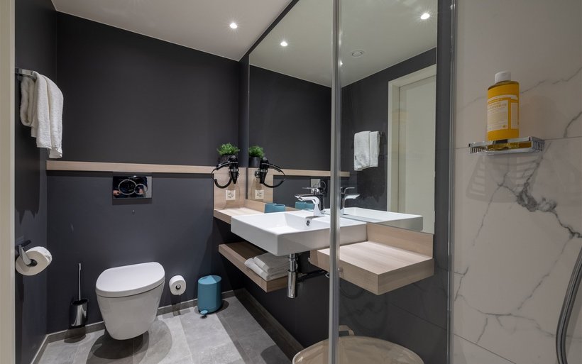 Für eine kommunikative Atmosphäre sorgt ein «Joyn Community Space», der es Gästen ermöglicht, sich ungezwungen kennenzulernen und schnell mit anderen zu vernetzen. Die Dachterrasse mit ihrem 360-Grad Panoramablick auf die nahen Alpen eignet sich ebenfalls für entspannte Get-Together. Die Gäste profitieren zudem von einer Tiefgarage mit Ladestationen für Elektro-Autos und -Fahrräder sowie ein Fitnessraum.