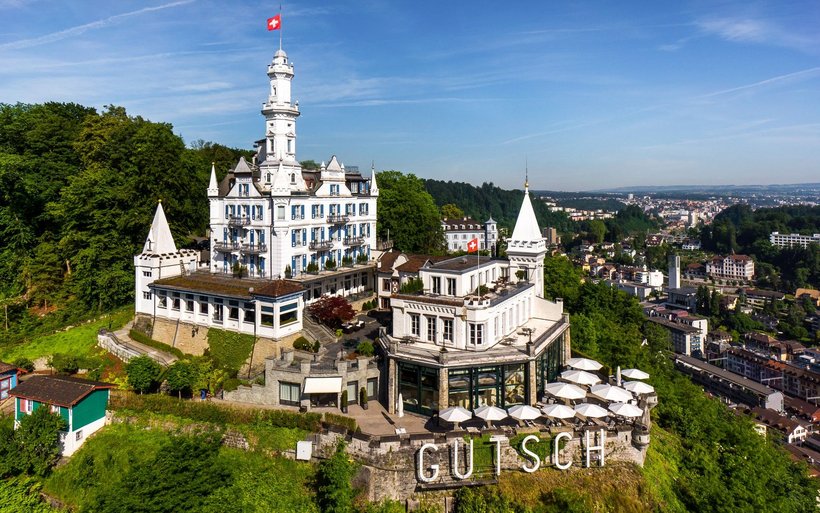 Das 1888 im Stil eines Märchenschlosses errichtete Château Gütsch gehört zu den Wahrzeichen Luzerns. Von 2003 bis 2014 war das Hotel geschlossen. Seit 2007 gehört die Anlage Lebedev.