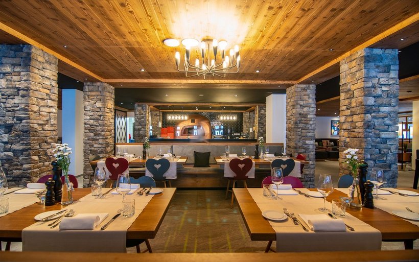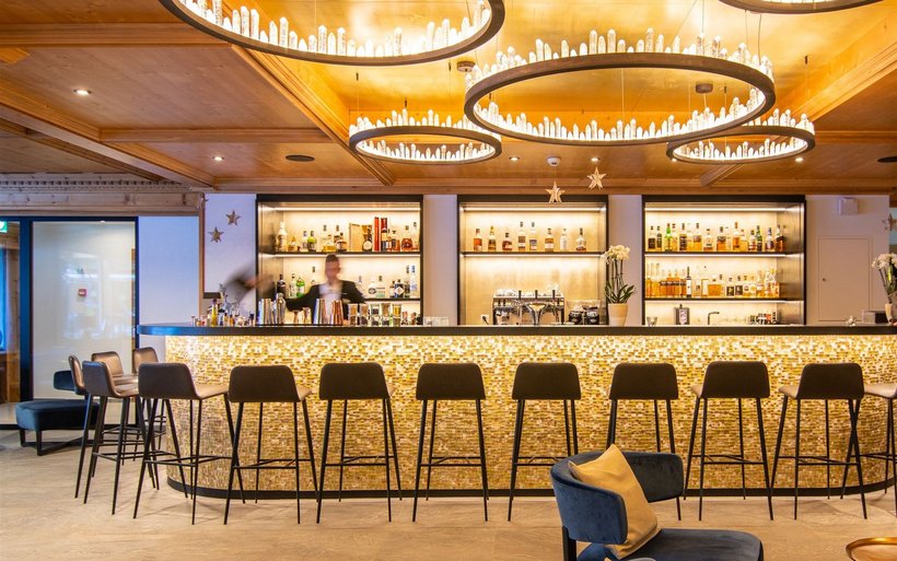 Wer das Haus von früher kennt, muss sich erst mal zurechtfinden. Dort, wo vormals die Pizzeria an die Strasse grenzte, empfängt nun die Lobby. Deren neu zweistöckige Architektur mit Atrium, in dem modern-zeitlose Kugellampen die zwei Stockwerke gekonnt verbinden, bringt Licht in den Eingangsbereich, das früher fehlte. Statt des klassischen Réceptionsdesks gibt es mehrere einzelne ovale Desks, die je nach Bedarf bespielt werden. Grundsätzlich können die Gäste aber dort einchecken, wo sie sich in der Lobby gerade wohlfühlen. Die Réceptionisten sind mit den nötigen Tablets ausgestattet. Der frühere Hoteleingang führt dagegen direkt ins Restaurant Cäsar Ritz, in dem neu auch alle Halbpensiongäste à la carte speisen oder wahlweise in einem der beiden anderen Restaurants des Hauses: Im italienischen Restaurant Del Ponte bietet man hausgemachte Pizza und Pasta und viele weitere Gerichte an, neu dort lokalisiert, wo vorher die Disco war, und ergänzt durch einen grossen Loungebereich. Fast unverändert präsentiert sich das «Stübli» für Schweizer Spezialitäten.