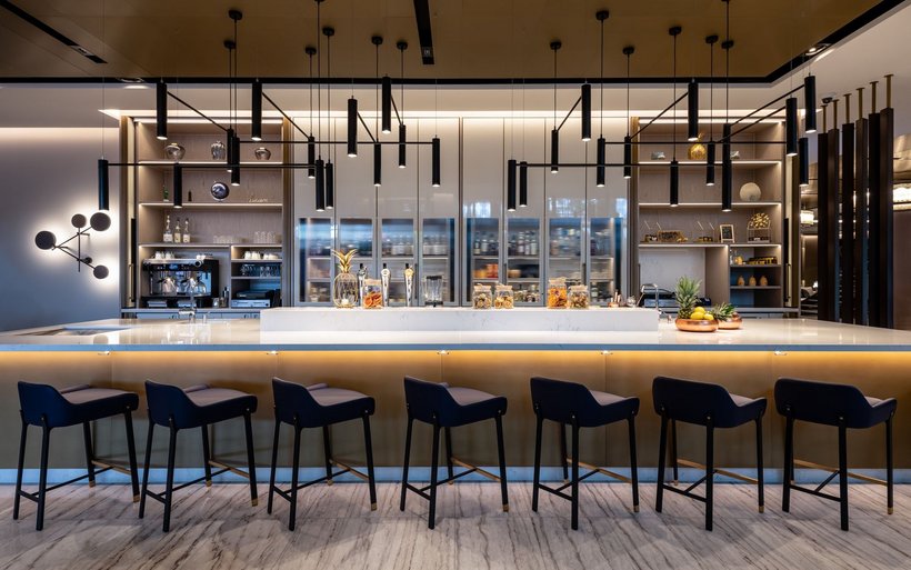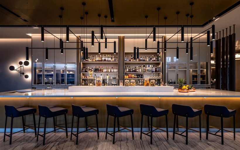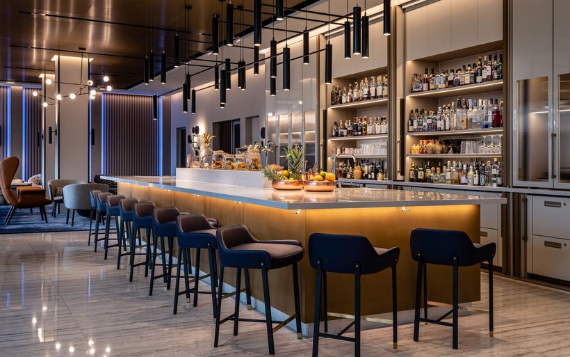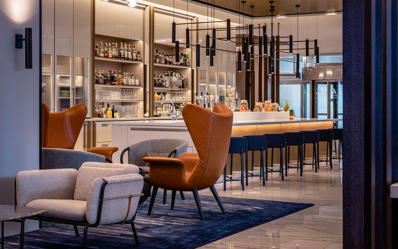 Seit bald 50 Jahren gehört das Gebäude des Zürich Marriott Hotel mit dem markanten Hochhaus direkt an der Limmat zum Zürcher Stadtbild. Um das 5-Sterne-Hotel rechtzeitig zum Jubiläumsjahr 2023 etwas aufzufrischen, wurde in den letzten Monaten der Eingangsbereich und die Hotelbar komplett umgebaut. Seit Juni ist die neue Lenox Bar geöffnet und lädt zu einer Reise nach New York ein.