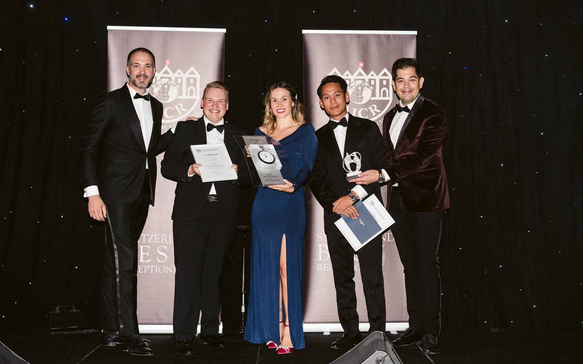 Pour les trois finalistes sur le podium, un bon d’achat offert par Bucherer d’une valeur respectivement de CHF 500.- (3ème), 1'000.- (2ème) et CHF 1'500 (1er). Lauréate de l’édition 2023, Stella Sotnikow aura l’ardue tâche de défendre les couleurs de la Suisse au prochain « AICR World’s Best Receptionist Competition » qui aura lieu à Nice (France) en février 2024. Elle s’est vu remettre le traditionnel Trophée Bucherer des mains du président sortant Romain Aranda, Directeur Général B&B hotel Geneva Airport, Genève et du président fraîchement élu le matin même, Dimitrios Trikaliotis, Directeur des opérations, Grand Hôtel des Bains de Lavey.