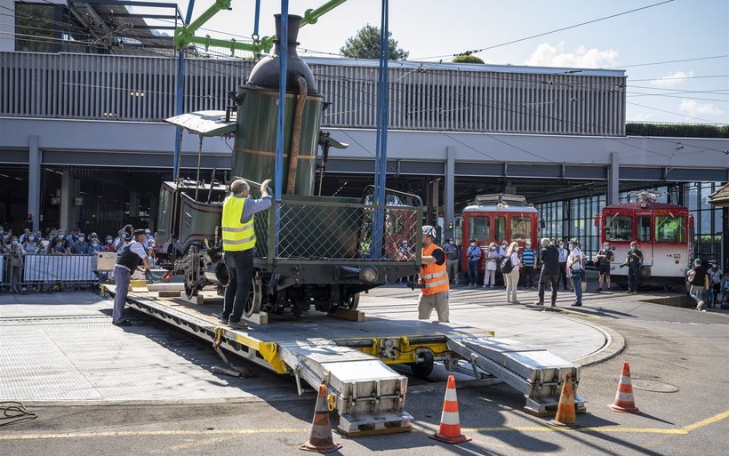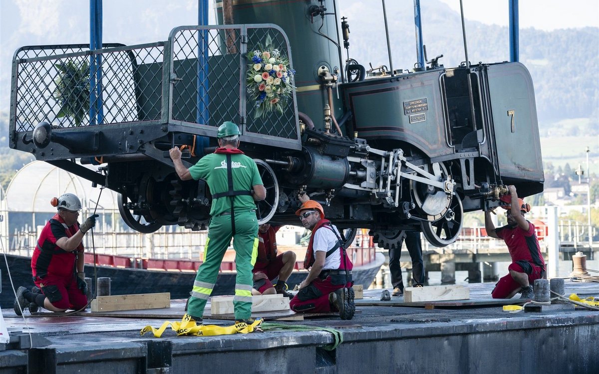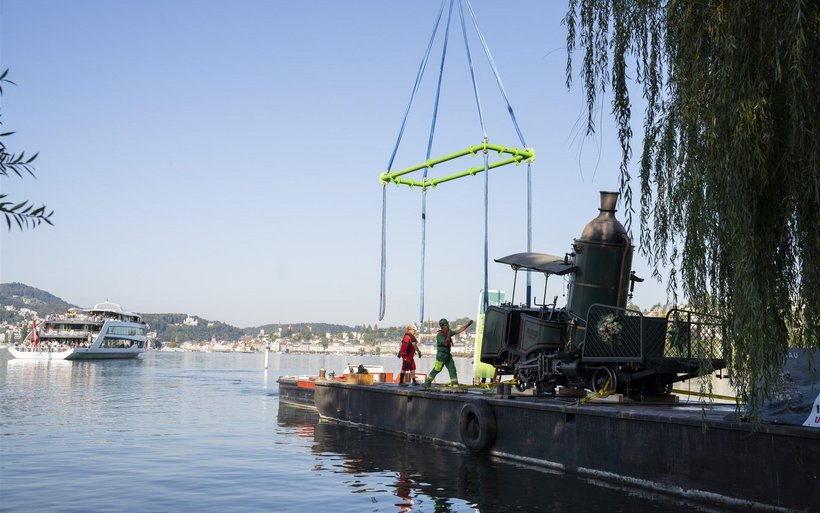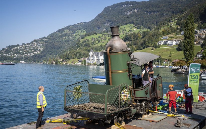 Nach der rund einstündigen Fahrt zu Wasser über den Vierwaldstättersee darf sich die eiserne Seniorin vorerst in Vitznau etwas ausruhen. In den Depots der Rigi Bahnen wird sie restauriert und flott gemacht, bevor sie 2021 im Rahmen von buchbaren Angeboten wieder auf die Rigi dampft.[IMG 2]