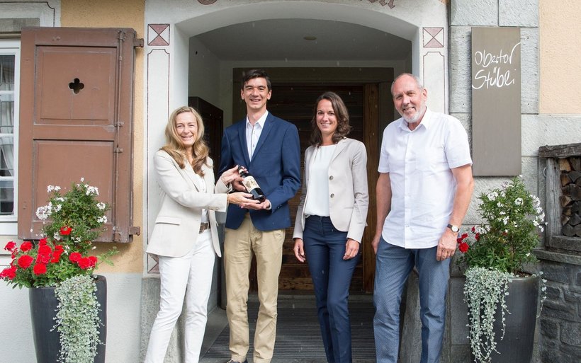 Unterstützung erhalten die beiden vom erfahrenen und langjährigen Küchenchef Rolf Schumacher, der die neue Direktion mit seiner berühmten Küche noch einen Winter lang begleiten wird. Das Gilde Restaurant überzeugt mit seiner vielfältigen Küche mit regionalen Produkten, die im Sommer sogar aus dem eigenen Garten kommen.[IMG 3]