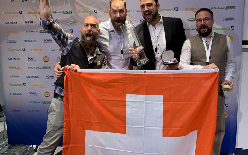 Mit dabei auch die vier Schweizer Bierexperten Martin Droeser (Gelterkinden), Patrick Thomi (Winterthur), Lukas Porro (Rheinfelden), und Gregor Völkening (Affoltern am Albis), die sich in mehreren Trainings auf diesen Wettkampf vorbereitet hatten.