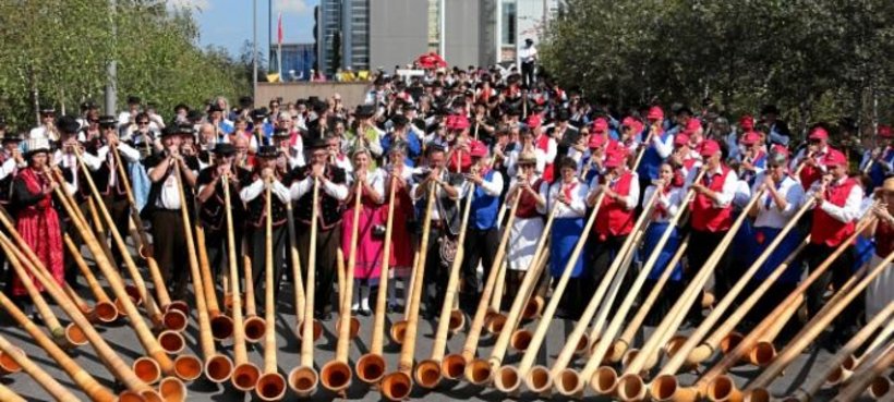 Ein solch riesiges Alphornkonzert sei eine «sehr spezielle Erfahrung», sagte eine Sprecherin des Organisationskomitees am Samstag auf Anfrage der Nachrichtenagentur sda. Das Erlebnis sei «auch physischer Art». Denn bei so vielen Instrumenten entstünden grosse Vibrationen – das Konzert gehe den Zuhörern richtiggehend «durch Haut und Knochen».