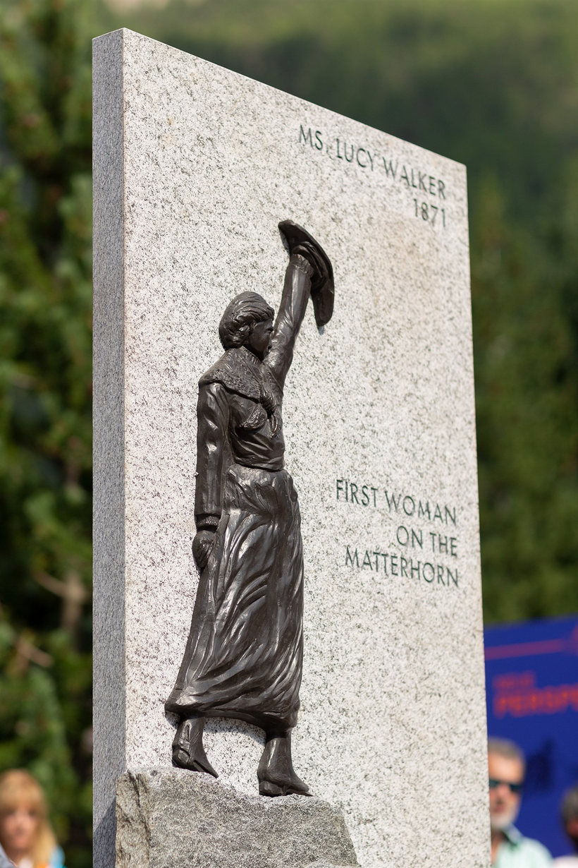 Am Donnerstag, 22. Juli 2021, jährte sich die Erstbesteigung des Matterhorns durch Lucy Walker – der ersten Frau auf dem Matterhorn – zum 150. Mal. Als Hommage an die bemerkenswerte Leistung der Britin enthüllte Bundesrätin Viola Amherd gemeinsam mit der Gemeindepräsidentin Romy Biner-Hauser auf dem Museumsplatz in Zermatt die Skulptur einer Bergsteigerin von Bildhauer Stefan Mesmer-Edelmann.