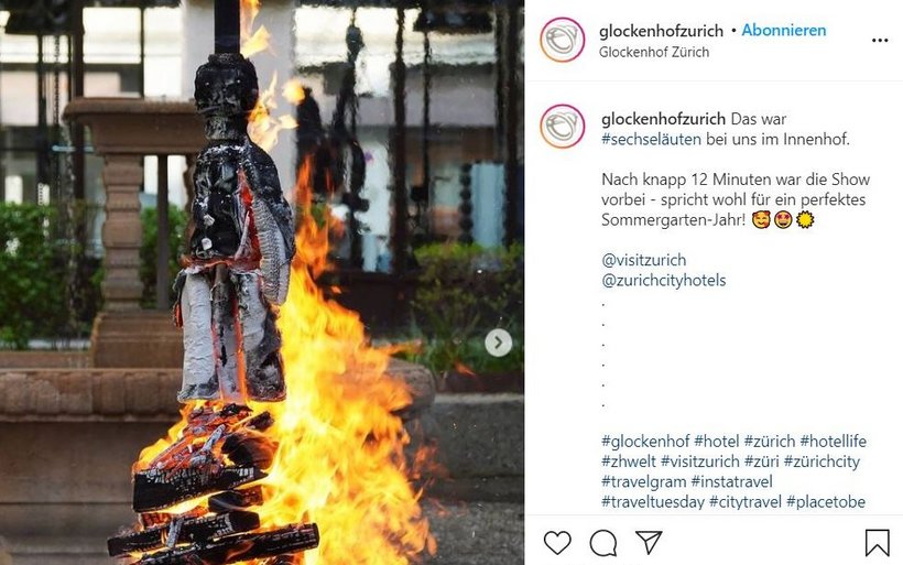 Auch wenn aufgrund der Covid-Massnahmen nur eine kleine Schar von Zünftlern, Freunde des Sechseläutens und ein paar Hotelgäste bei der am Montag pünktlich um 18 Uhr angezündeten  kleinen Böögg-Puppe anwesend waren, freute sich der Direktor über die gelungene Aktion in seiner Stadtzürcher Gartenoase. «Zünfte der Zunft und Freunde des Zunftwesens waren begeistert von der Idee. Wir freuen uns auf das nächste Sechseläuten im April 2022». (htr/npa)