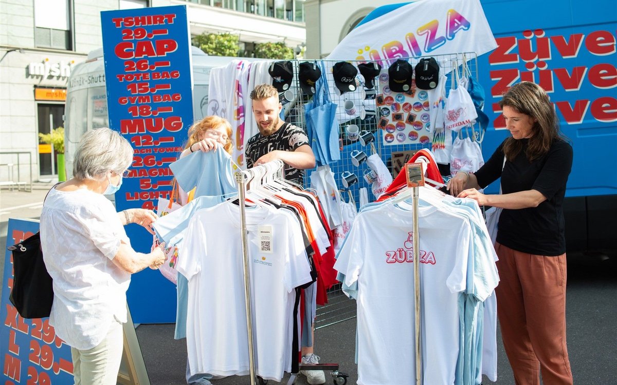 Ein buntes Lastwägeli mit Marktschreier tourte in den vergangenen Tagen durch die Schweiz und verkaufte T-Shirts, Tassen und Bags von Feriendestinationen mit merkwürdigen, erfundenen Namen wie Zübiza, Zükjavik, Züstanbul, Züsterdam oder Zü-Tropez. Hinter der Aktion steckt Zürich Tourismus. Die Marketingorganisation lüftete das Geheimnis hinter dieser besonderen Roadshow am Freitag beim Bahnhof Stadelhofen in Zürich.