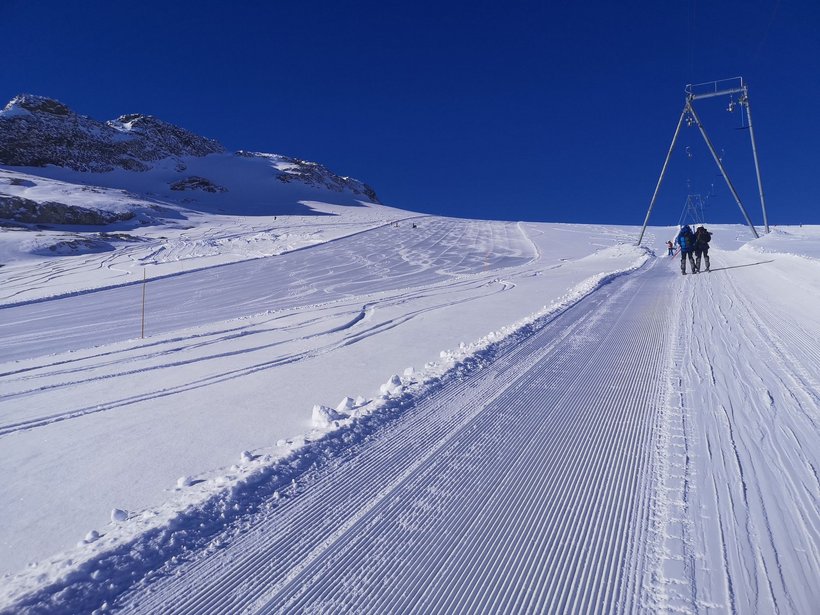 «Grâce aux 30cm de neige fraiche tombés en altitude la semaine passée, nous avons pu préparer le domaine du glacier de manière optimale et proposer 10 kilomètres de pistes pour ce premier