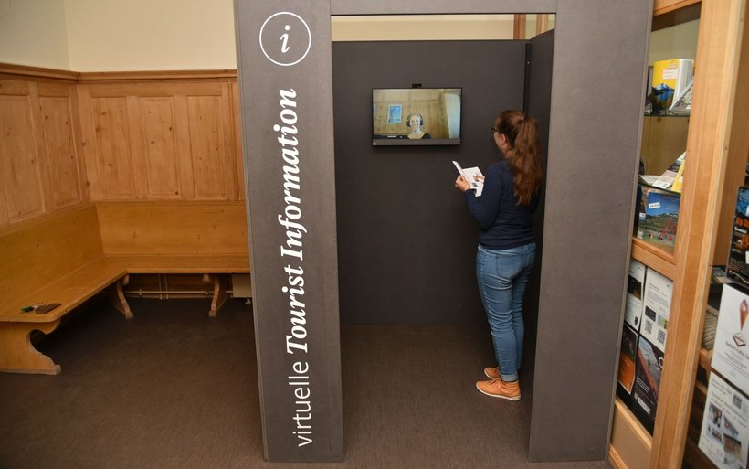 Eine hohe und persönliche Beratungsqualität ist das Ziel jeder Destination. Im weitläufigen Engadin geht die Tourismusorganisation Engadin St. Moritz neue Wege, um die persönliche Beratung aufrecht zu erhalten und dabei das Infostellenmanagement für die auftraggebenden Gemeinden wirtschaftlich zu gestalten. Am virtuellen Schalter wird ein:e Gästeberater:in angerufen, sobald ein Gast in die Box tritt. Über einen Bildschirm, ähnlich einer Video-Konferenz, erhält der Gast in einem Beratungsgespräch die gewünschten Informationen. Die Mitarbeiter:innen befinden sich dabei im Home Office oder in einer anderen Tourist-Info.