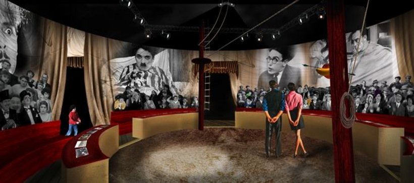 In einem Saal mit 150 Plätzen werden in zehn Minuten Leben und Werk von Charlie Chaplin zusammengefasst. In einer Filmset-Atmosphäre können ein Nachbau einer Goldgräberhütte aus «The Gold Rush», eine Maschine aus «Modern Times» oder ein Filmdekor aus «The Circus» bewundert werden.