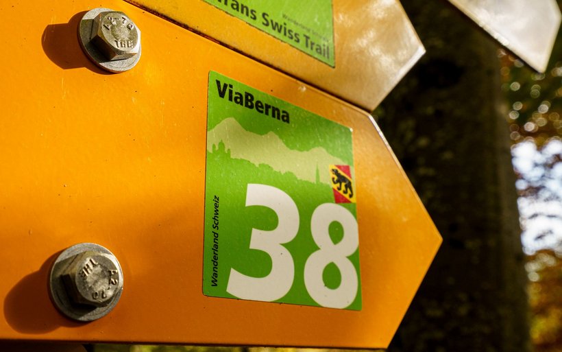 Nun bietet die neue Schweiz-Mobil-Route 38 durchgehend hohe Standards. Dies gilt etwa für die zusätzliche Weg-Signalisation inklusive Infotafeln, für die verfügbaren Unterkünfte und Verpflegungsmöglichkeiten sowie für die Anbindung an den öffentlichen Verkehr. Auch der Gepäcktransport lässt sich auf der ViaBerna buchen – ein weiteres Qualitätsmerkmal der Strecke.