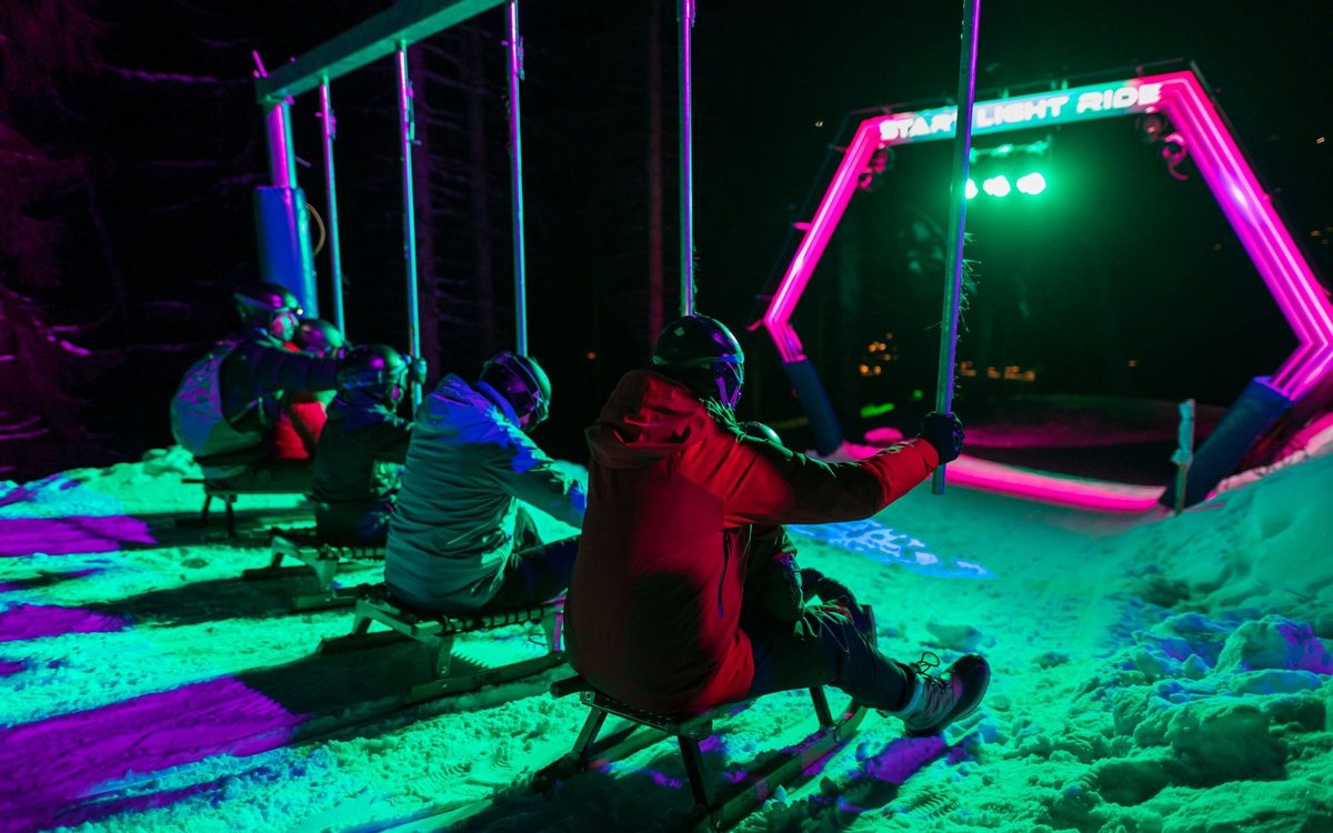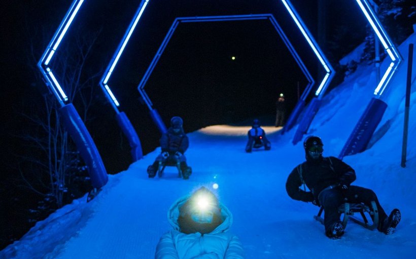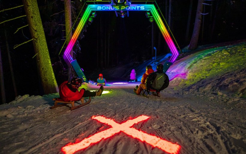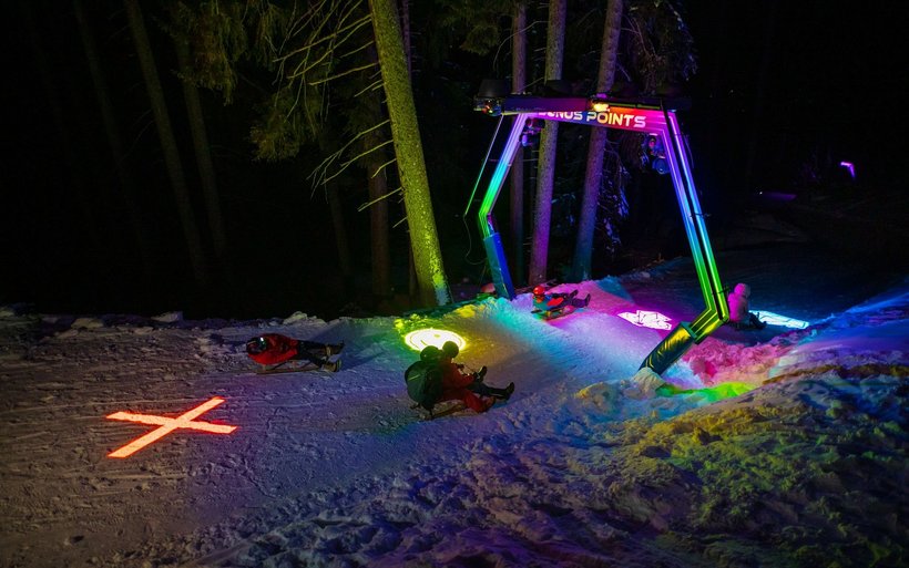Die Schlittel Fans erwartet im oberen Streckenteil ein klassisches Nachtschlitteln mit dunkleren und helleren Passagen, um sich einzuwärmen. Im unteren Teil tauchen nach und nach multisensorische Lichtinstallationen auf, die dem Schlittelnden nicht nur Unterhaltung, sondern auch eine Challenge bieten.