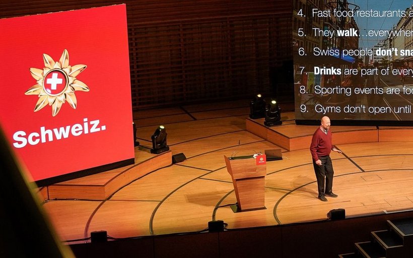 Und dann sprang Roger Brooks auf die Bühne, ein Tourismusexperte aus den USA, und erklärte den versammelten Tourismusprofis unter anderem, dass Gäste auf Bestenlisten und sonstige Ranglisten stehen. Das war nicht unbedingt neu, aber eigentlich wollte der Amerikaner etwas ganz anderes mitteilen. Er hatte soeben zum ersten Mal die Schweiz bereist – und wow, wow, wow! Ein solch schönes Ferienparadies auf Erden hatte er noch nicht entdeckt! Die Schweiz ist so wunderbar, grossartig, wahnsinnig, toll! Irgendwann war das kein Keynote mehr, sondern eine Liebeserklärung, wie es Helvetia noch nicht erlebt hat.