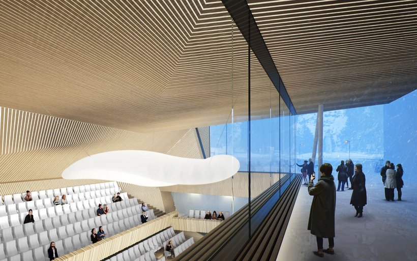 Für einen Konzertsaal gar einzigartig sei der Blick in die Berge. Der Raum verfügt über eine grosse Fensterfront. Das Parkett bietet Platz für eine Bühne für ein 75-köpfiges Orchester, acht Zuschauerreihen lassen sich mechanisch ausfahren. Auf dem Balkon sind noch einmal sechs feste Zuschauerreihen installiert.