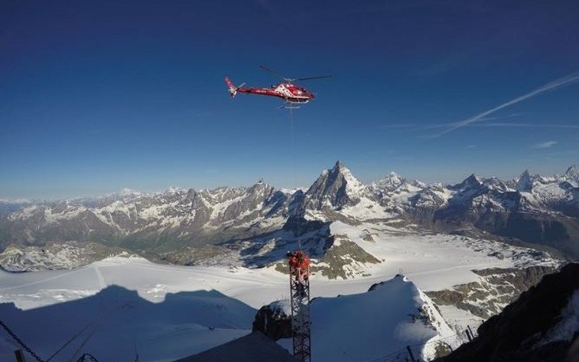 Bei meinem letzten Besuch auf der Hochgebirgsbaustelle auf Matterhorn glacier paradise wurde mir einmal mehr bewusst, vor welche immensen Herausforderungen das Wetter die Bauarbeiter stellt. Auch Gerold Biner bestätigt, dass die Piloten der Air Zermatt vor allem mit dem Wind, dem schnell wechselnden hochalpinen Wetter und dem Nebel zu kämpfen haben. Eine weitere Schwierigkeit entsteht zudem durch die Steilheit des Geländes, die dazu führt, dass die Piloten die Unterlasten mit einer Seillänge von mindestens 60 Meter präzise zur Baustelle fliegen müssen. Ein unglaublicher Balanceakt. Zu guter Letzt kommt hinzu, dass der Helikopter auf fast 4000 Metern durch die tiefe Luftdichte an der Grenze des Möglichen operiert. Was mir während des Gesprächs immer klarer wird, fügt Gerold schliesslich an: «Die Arbeiten auf der 3S Baustelle Klein Matterhorn gehören zu den absolut anspruchsvollsten Aufgaben, die wir mit unseren Helikoptern je durchgeführt haben.»