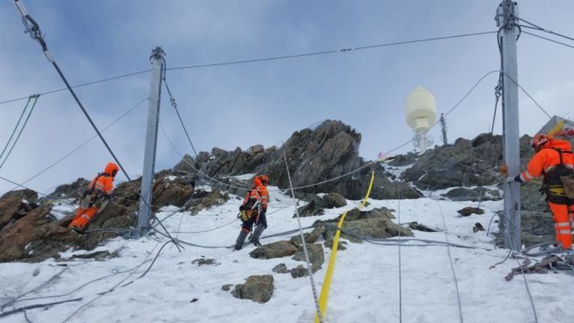 Zudem wurden zwei Dehnungssensoren, sogenannte Extensometer, mit einer Tiefe von je 24 und 21 Metern gebohrt, welche die Verschiebungen der Bergstation aufgrund des Permafrostes messen.