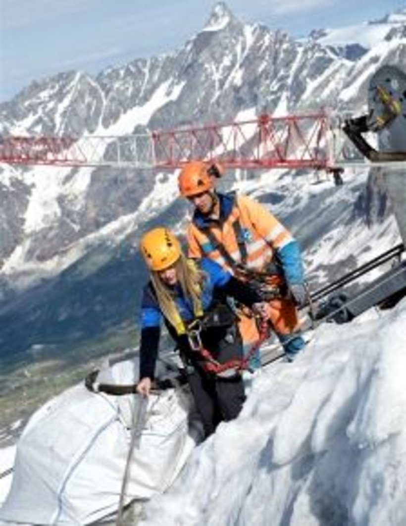 Natürlich darf die neue Materialseilbahn nicht für private Transporte verwendet werden, sondern befördert lediglich Baumaterial für die neue Bergstation und die Stütze 3 von Laghi Cime Bianche via Testa Grigia auf Matterhorn glacier paradise (3'883 m ü. M.). Die von der Moosmair GmbH gebaute Schwerlast-Seilbahn überwindet auf der rund vier Kilometer langen Strecke über 1'000 Höhenmeter. Besonders herausfordernd beim Bau dieser Materialseilbahn war, wie mir unser Bau-Chef Toni Lauber verriet, der Seilzug, der im Mai mithilfe eines Kamov Grosshelikopters durchgeführt wurde. Im Anschluss an den spektakulären Vorseilzug wurden die beiden Tragseile sowie das Förderseil mithilfe von Seilwinden gezogen. Für diese rund einen Monat andauernden Arbeiten waren jeweils bis zu sechs Mitarbeiter involviert. Die alpinen Witterungsverhältnisse und die doch beträchtliche Höhe der Baustelle verkomplizierten dieses Unterfangen ohne Zweifel. Ende Juni kam dann nochmals der Grosshelikopter zum Einsatz, um den imposanten Baukran auf der neuen Bergstation zu montieren.