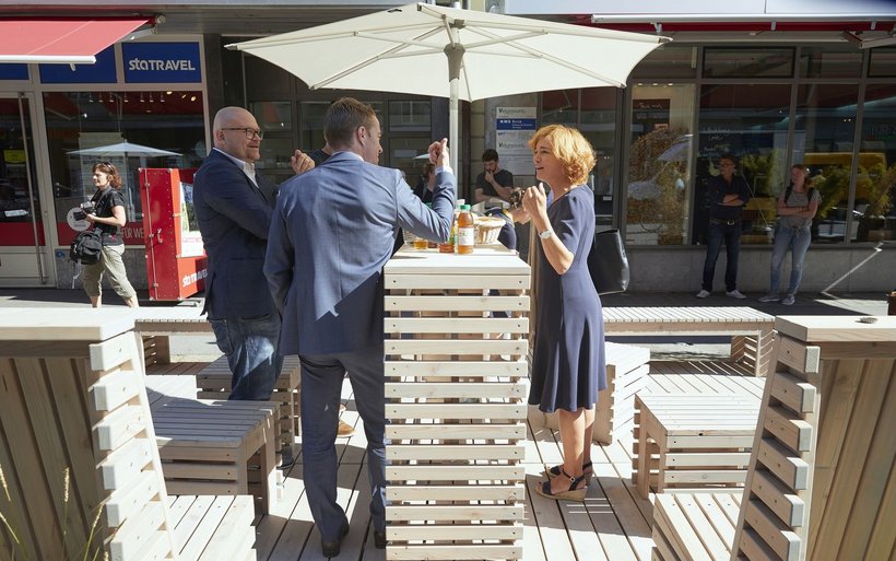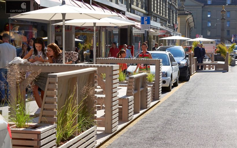 Der Parklet-Versuch ist Teil einer ganzen Reihe von Massnahmen, mit denen die Berner Stadtregierung den öffentlichen Raum aufwerten will. Im Rahmen der Aktion «Pop-up Bern» geben die Behörden interessierten Privaten auch Baukasten-Kits für die Möblierung etwa von kleinen Plätzen ab.