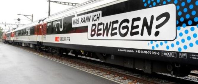Unter dem Motto «Verantwortung» schickt die SBB den neu lancierten Zug ab Mittwoch durch die Schweiz auf Tournee. Behandelt werden in den am Dienstag vorgestellten Wagen auch ganz grundsätzliche Fragen, etwa wie Billette gekauft werden und vieles mehr.