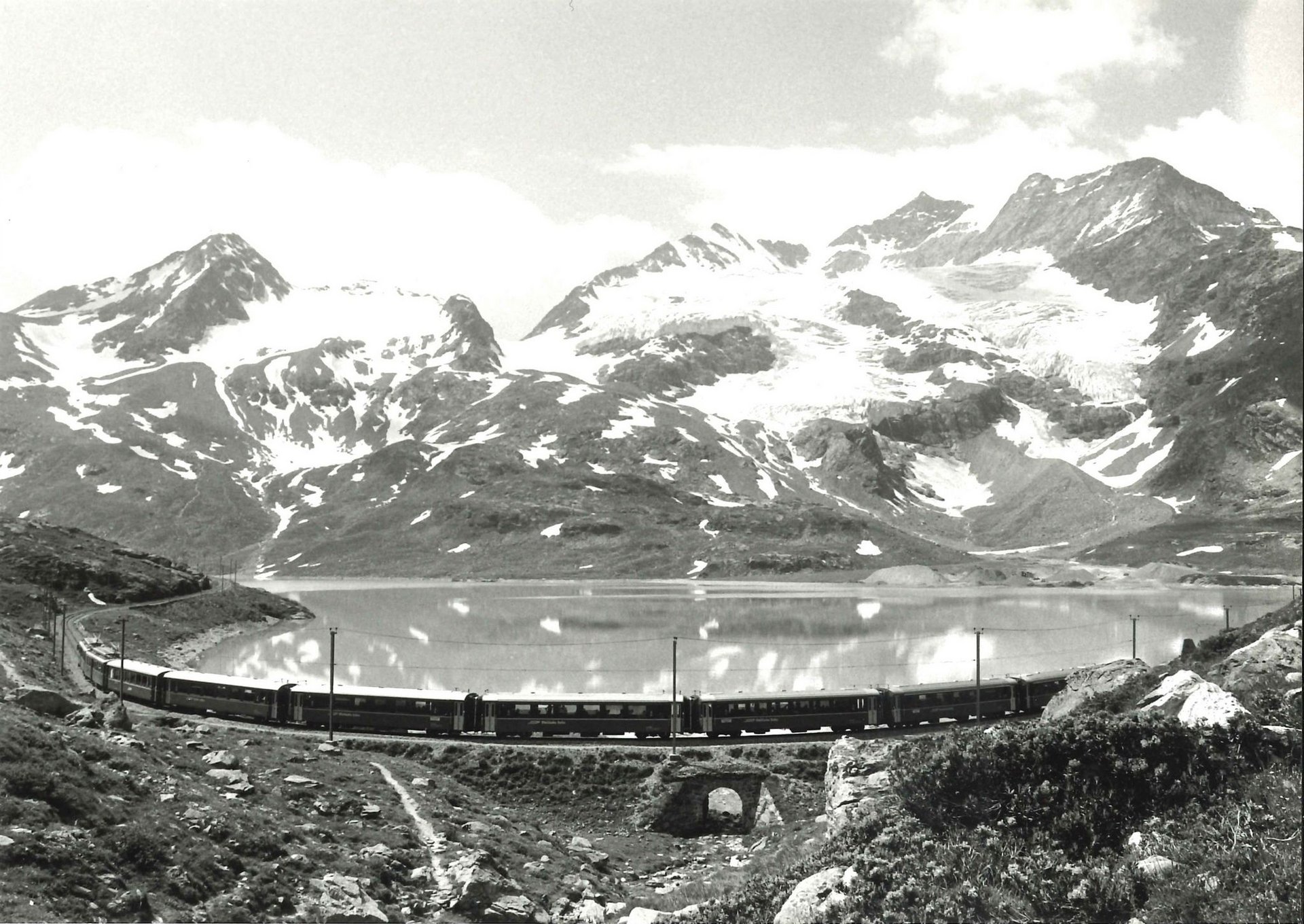 Vor 50 Jahren liess die Rhätische Bahn zum ersten Mal einen Bernina Express von Chur über den 2235 Meter hohen Berninapass bis ins norditalienische Tirano fahren.