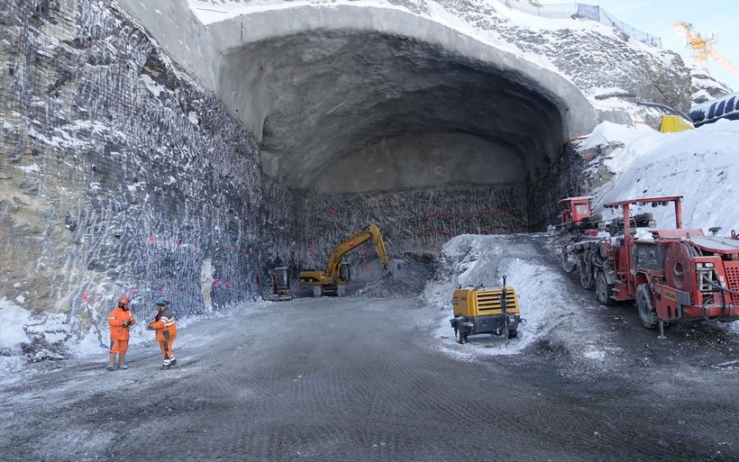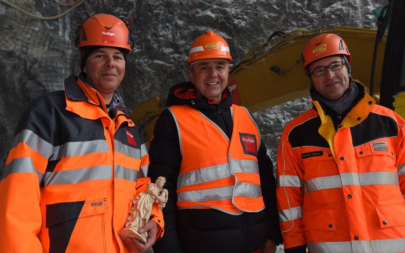 Kurz nach zwölf Uhr wurden geladene Gäste und Medienschaffende Zeugen, wie die Bauarbeiter die letzte dünne Felswand der beiden Bergstollen durchstiessen. Das teilten die Jungfraubahnen und die Männlichenbahn mit, die beiden Bauherren des V-Bahn-Projekts. Im Anschluss fand eine erstmalige Begehung der beiden bis zu 40 Meter langen Stollen statt. Insgesamt wurden für die Bergstation und die Verbindungsstollen rund 11’000 Kubikmeter Fels ausgebrochen.
