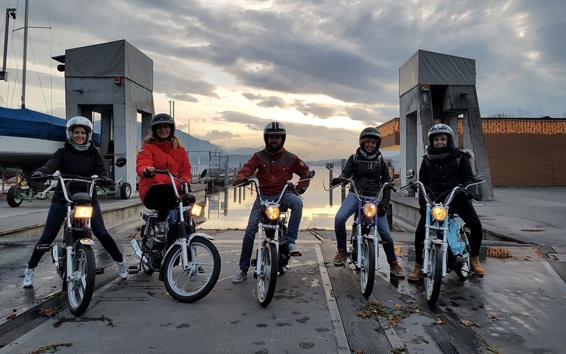 Frauen und Männer hielten sich bei den Töffli-Touren etwa die Waage. Besonders beliebt seien Polterausflüge, Geburtstage oder Vereinsanlässe, die durch ländliche Gegenden führen. Vorkenntnisse brauche es fast keine, sagt Wermelinger. Rund 80 Prozent der über 50-Jährigen hätten früher selber einmal ein Töffli gehabt. Auch seien die Zweitakter einfach zu Handhaben, das fanden auch die fünf Schwestern, die ihre Mofas bei der Zuger Firma gemietet haben. Alle fünf sind älter als 70.