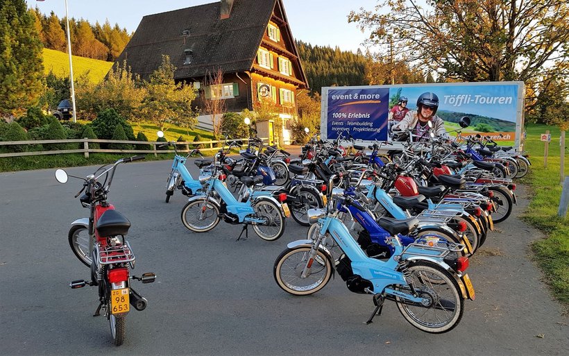 Die Töffli-Touren werden in verschiedenen Regionen der Schweiz angeboten, von Zug über Zürich bis ins Emmental. Ab diesem Sommer tuckern Gruppen mit Zweitaktern auch durch das Appenzellerland: «Bubieinfache Handhabung, viel Spass und ein Gefühl von grenzenloser Freiheit garantiert», verspricht der Anbieter, der die Touren in Kooperation mit Appenzellerland Tourismus (AR) lancierte.