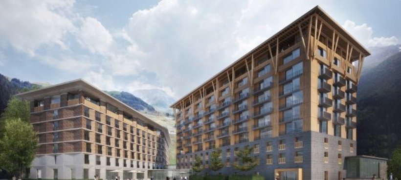 Neben dem Hotel soll ein zweites Gebäude mit 96 Eigentumswohnungen entstehen.Die Verkaufspreise liegen für die von 45 bis über 133 Quadratmeter grossen Wohnungen gemäss Mitteilung zwischen 450'000 Franken und knapp zwei Millionen Franken. Der Baubeginn ist für Frühling 2015 vorgesehen. Ende 2017 soll die Anlage fertig gebaut sein.
