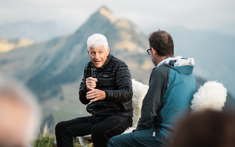 Zu einem wahren Wandergipfel gehört natürlich das Wandern selbst. Aus den Sesseln des edlen 5-Sterne-Hauses gehts am späten Nachmittag mit Bergschuhen und Faserpelz per luftige Sesselbahn aufs Horneggli rauf. Nach einer kurzen Wanderung trifft man sich am Lagerfeuer, wo der ehemalige SBB-Chef Benedikt Weibel unter anderem von seiner Tätigkeit als Bergführer und über seine Liebe zu den Alpen erzählt: «Die Berge sind immer die Konstante in meinem Leben gewesen.»