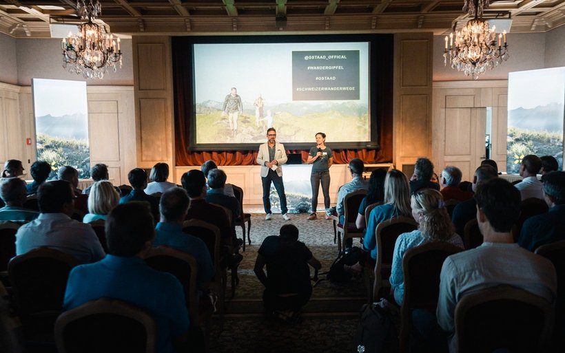 Der Anlass startet ohne Wanderschuhe, jedoch mit Kaffee und Gipfeli im edlen Gstaader «Palace». Moderator Nik Hartmann, der einst mit Hund quer durchs Land unterwegs war, führt mit viel Spontaneität durch den Anlass. Schnell geht es in medias res: Michael Roschi, Geschäftsführer von Schweizer Wanderwege, zeigt auf, wie sehr das Wandern an Attraktivität gewonnen hat.